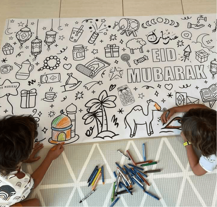 Celebrate Eid with our Eid Doodle Roll- 2x1 meter paper roll filled with beautifully illustrated Eid-themed doodles. Perfect for kids and families, it’s a fun and engaging way to learn, reflect, and create together while discussing the spirit of the Eid. Ideal for school, playdates, and events, this interactive activity brings joy, creativity, and connection to every gathering.