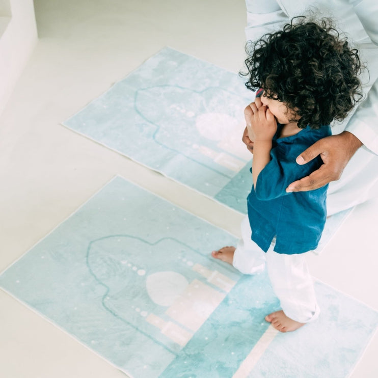 Matching Prayer Mat Set for Adult & Child - Mint Green