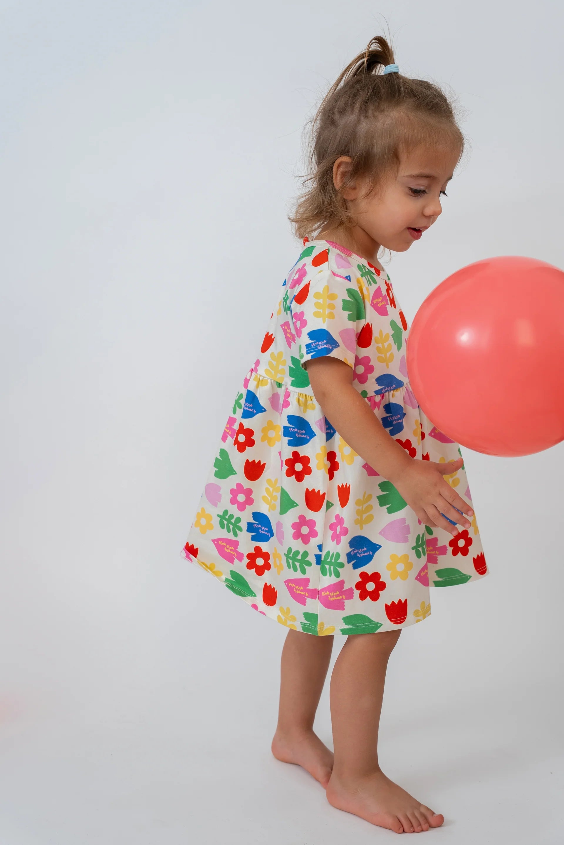 Inspired by the cherished Arabic melody "طيري طيري يا عصفورة," the Aasfoura dress captures the spirit of freedom and childhood wonder. This playful piece features a vibrant tapestry of birds, blooms, and foliage that dance across the fabric, bringing the song's whimsical charm to life. Made from premium cotton, it's wonderfully soft and breathable—perfect for keeping your little one comfortable whether they're exploring the world or celebrating special moments. A dress that lets imagination take flight.