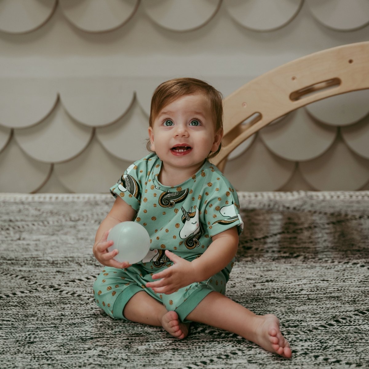Get ready to sparkle and shine! Whether they're exploring fantasy lands or having a cozy day at home, this soft aqua unicorn shorts set will keep them comfy all day long.