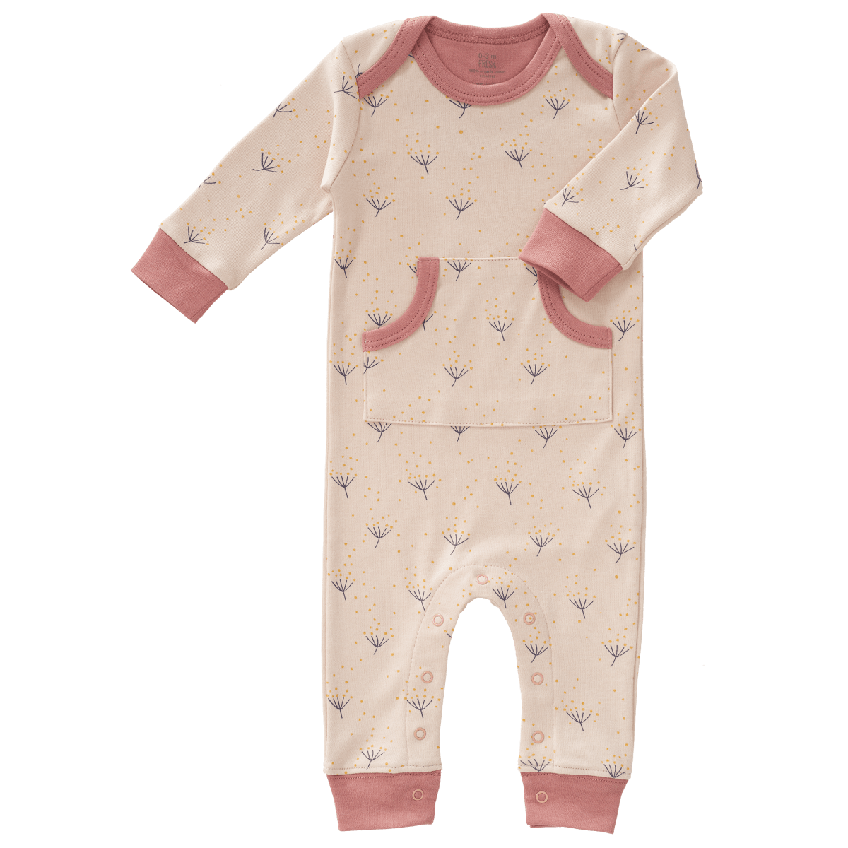 With this beautiful baby romper suit by Fresk your baby feels on the day and in the night always comfortable. The pyjama has no feet, so that the baby can wear socks if needed. The romper suit is available in three different sizes - from birth up to 12 months - and are made of organic cotton. This pyjama is very soft and comfortable on the baby's skin. Thanks to the push buttons in the step you can easily open the romper suit on the bottom and wrap your baby.