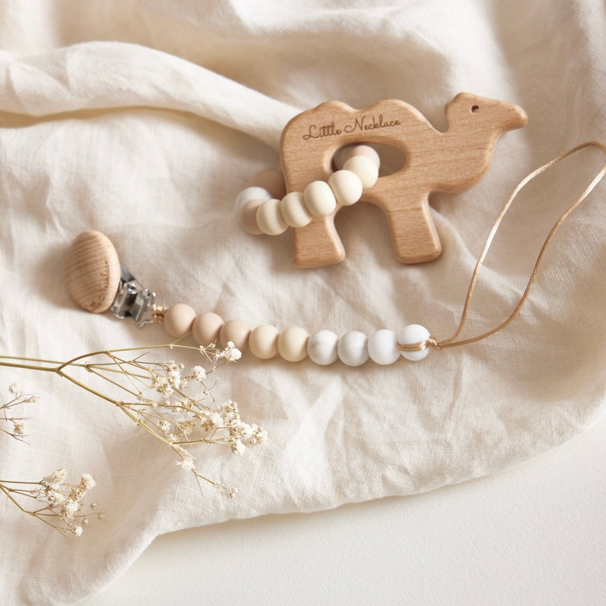 Our Little Necklace teether is made of soft silicone beads to help soothe and massage your childs gums a whole camel-lot ! Easy to hold camel-shaped ring makes it visually fun for your child to hold onto during use.