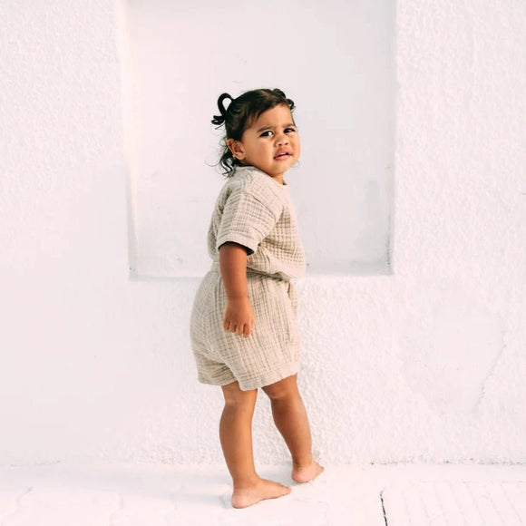 Expertly made with GOTS certified 100% cotton, Beaux Desert's matching sets are a must-have for any tini's wardrobe. The loose, relaxed design ensures long-lasting wear and superior comfort, making them ideal for delicate skin. With versatile, unisex colors, these high-quality products can be shared and easily paired, extending their durability.