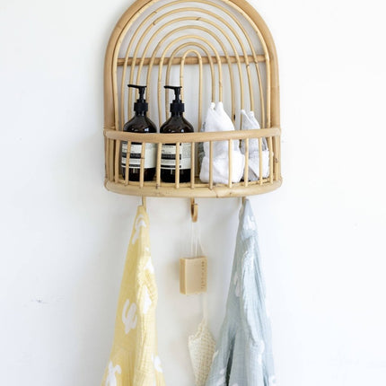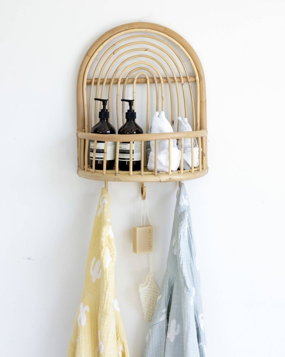 This rattan wall hanger is the perfect blend of boho and chic. This makes the perfect spot to hang your little one's cute clothes and special outfits with a small shelf for a plant, a candle, some books, or a stuffed animal.