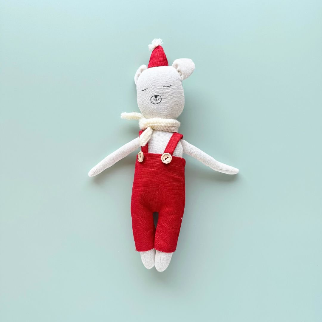 Meet Snowy, the cuddly bear ready to brighten your tini’s festive moments! Dressed in bold red overalls, this soft and friendly bear is made from organic cotton—perfect for gentle hugs and cozy play. With a timeless design and a cheerful holiday look, Snowy is here to spark imagination, comfort your tini, and make every winter day a little more magical.