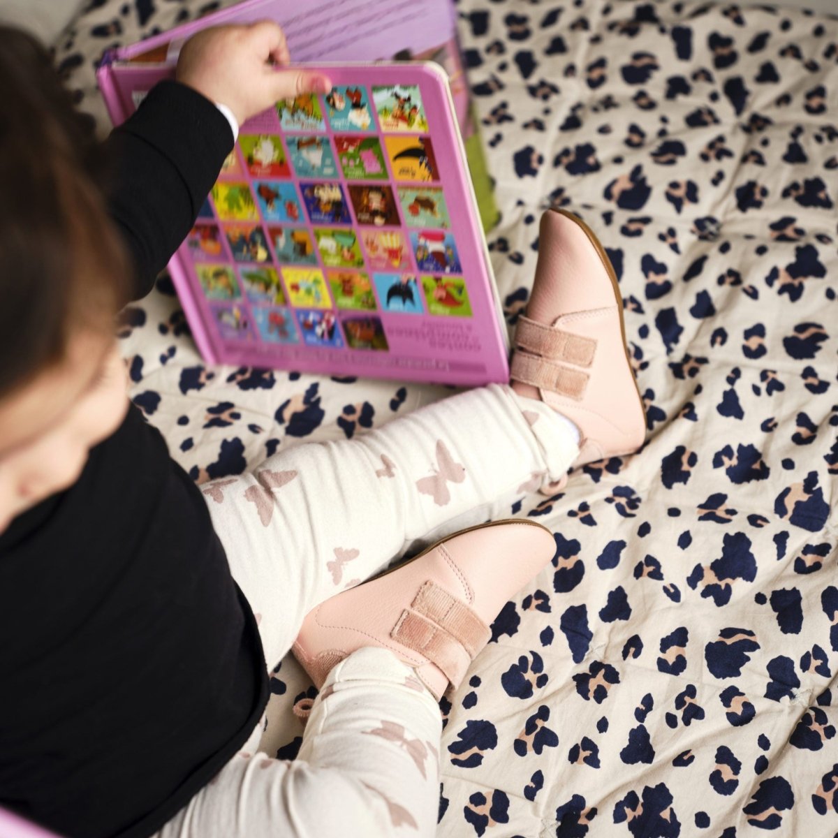HOB shoes are handcrafted by skilled artisans in Morocco, using 100% vegetable-tanned leather. All HOB shoes are lightweight and feature a non-slip sole to mimic walking barefoot, allowing your child's feet to move freely, flex their toes as needed, giving space for feet muscles to develop as nature intended.