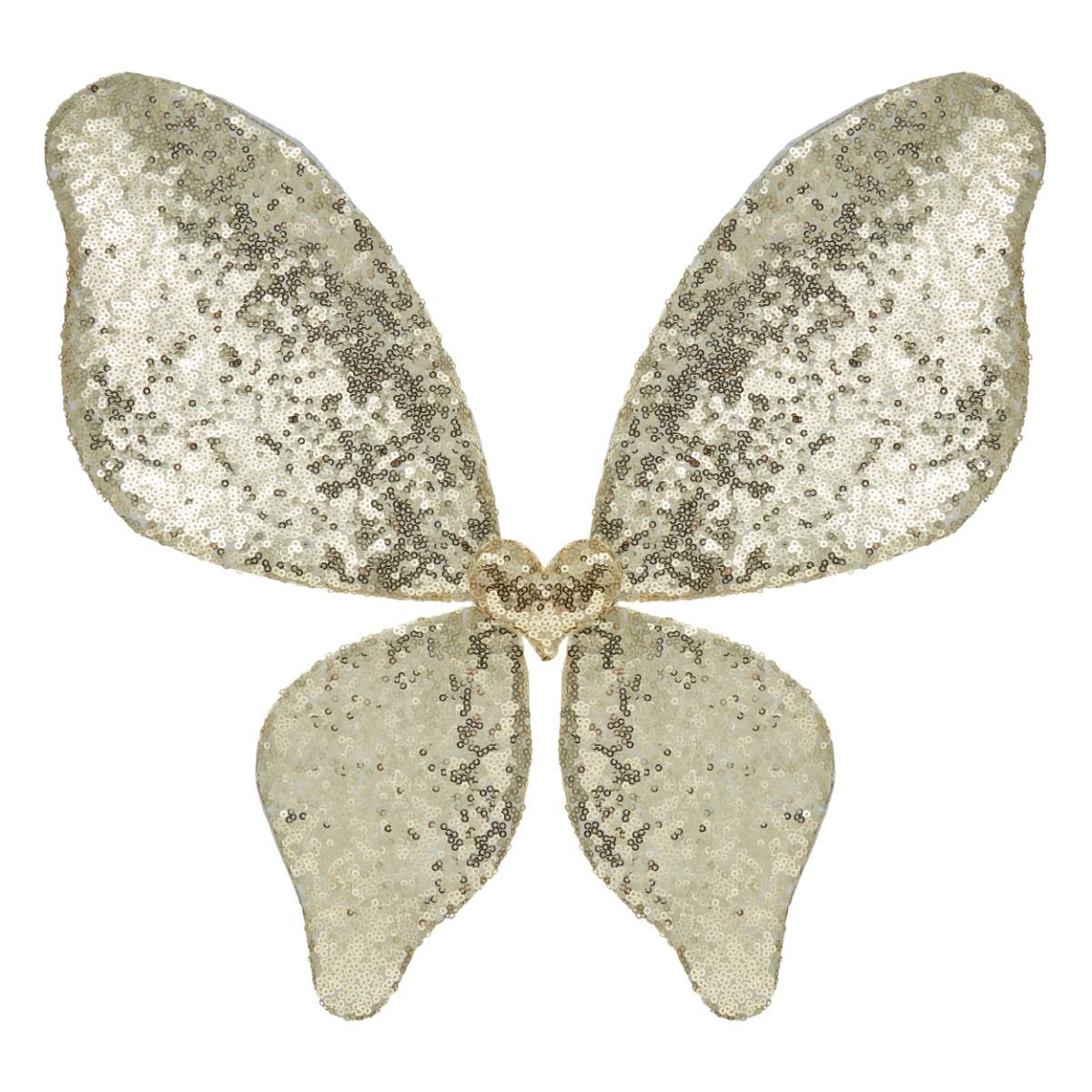 Shimmer and shine, glitter and sparkle with these show-stopping gold sequin fairy wings! Completely covered in gold sequins, these wings have elasticated straps and a pretty sequin-covered heart at the centre.