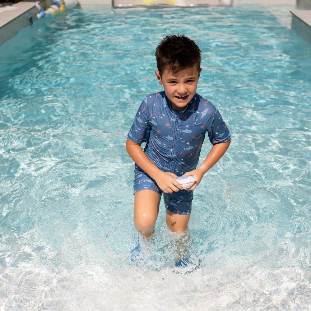 Get ready to make a splash with Fresk's adorable swimwear! Perfect for beach days or pool parties, this suit not only adds to your tini's style, but also shields their skin with its built-in UV protection. And for even more sun protection, the long-lasting fabric and short collar offer extra coverage.