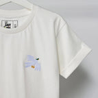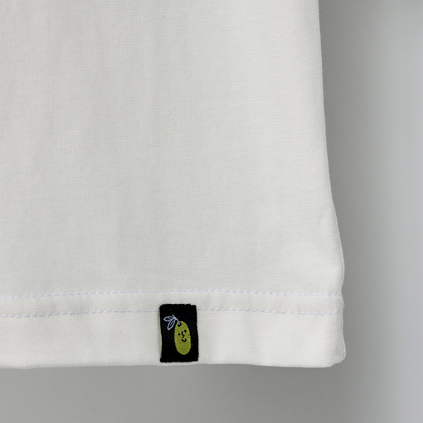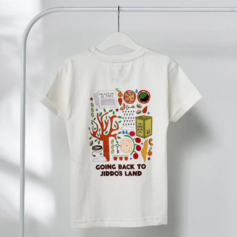 Jump into Jiddo's world with our off-white tee, showcasing iconic symbols that embody the Palestinian spirit!