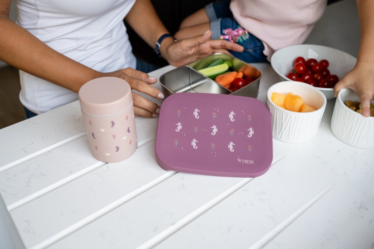 Fresk food jar holds 300ml of any food items and keeps it warm or cold for up to 6-8 hours.