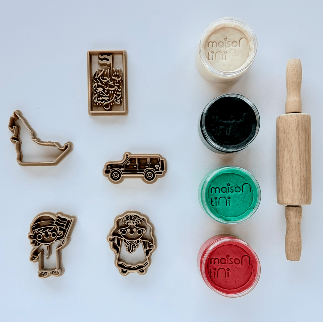 Celebrate creativity and national pride with this special UAE-themed playdough set! Perfect for kids’ activities, classroom projects, or National Day celebrations, this set includes: