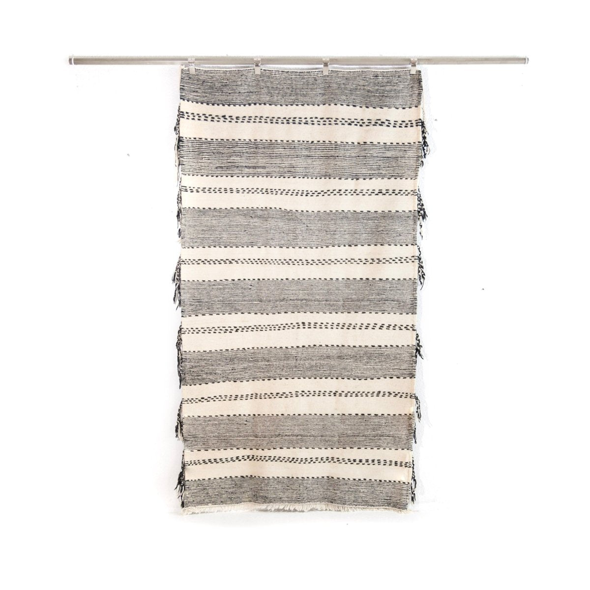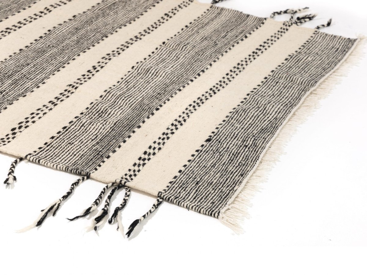 Discover the unique beauty of Morocco with Adidet's Zanafi rug! Hand-knotted by the Zanafi tribe in the High Atlas Mountains, this soft kilim rug features classic black and white diamond and striped patterns that will instantly upgrade any space in your home. Highly durable and easy to maintain, this reversible piece of art can be used as a bed throw, wall decoration, or in your kid's playroom. Its light weight makes it easy to move around, so redecorate as often as you'd like!