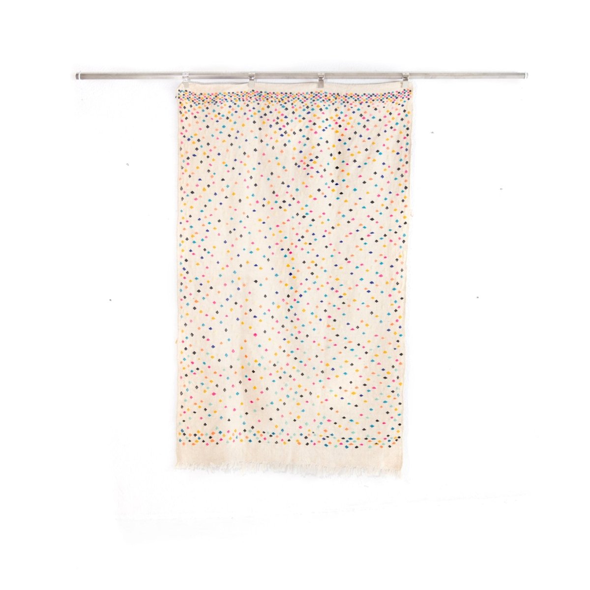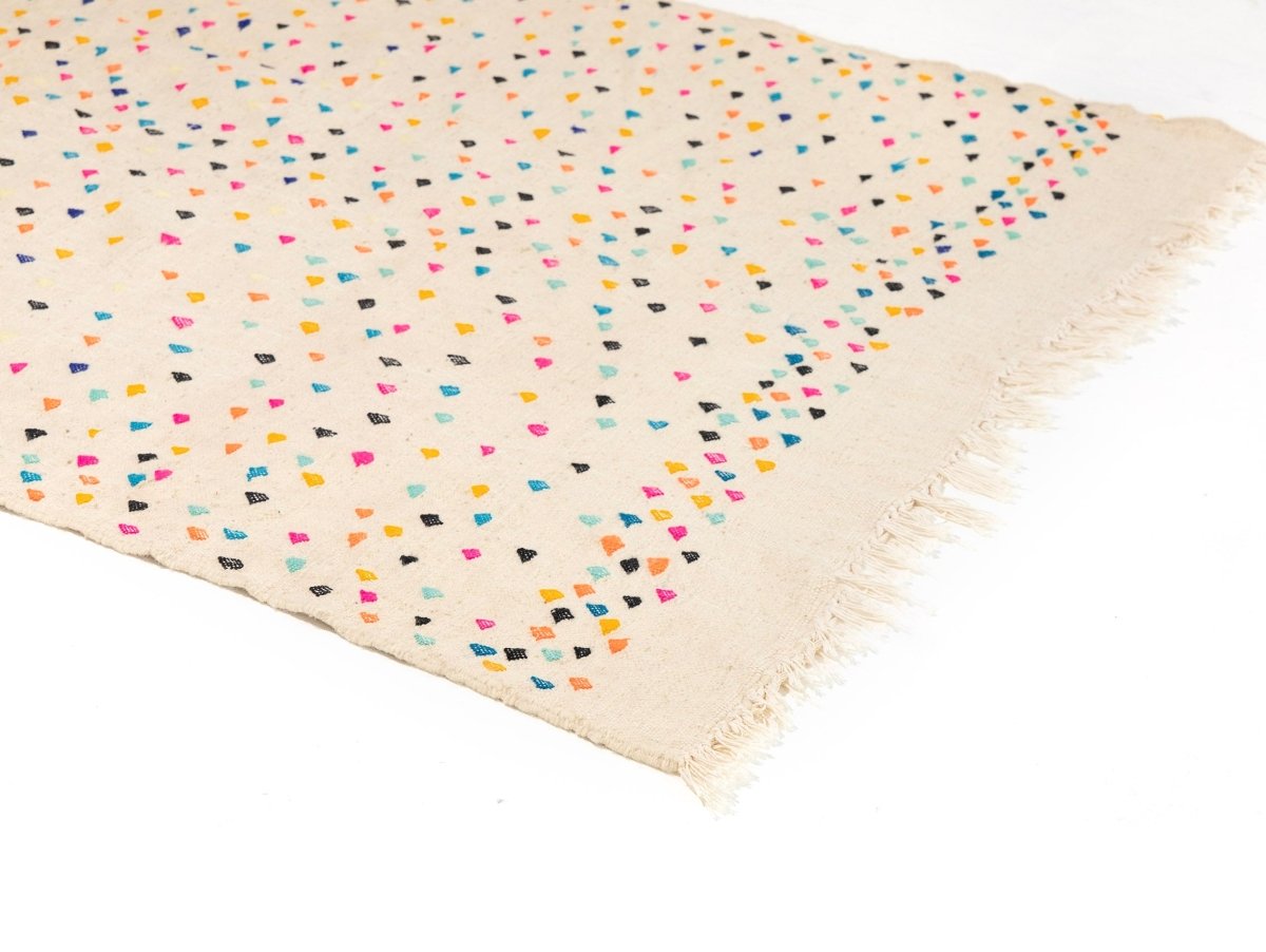 Sprinkle a dash of happy to your kid's bedroom or playroom with this light kilim. This kilim can be hung on the wall, used as a bedspread, or simply as a lovely floor kilim.