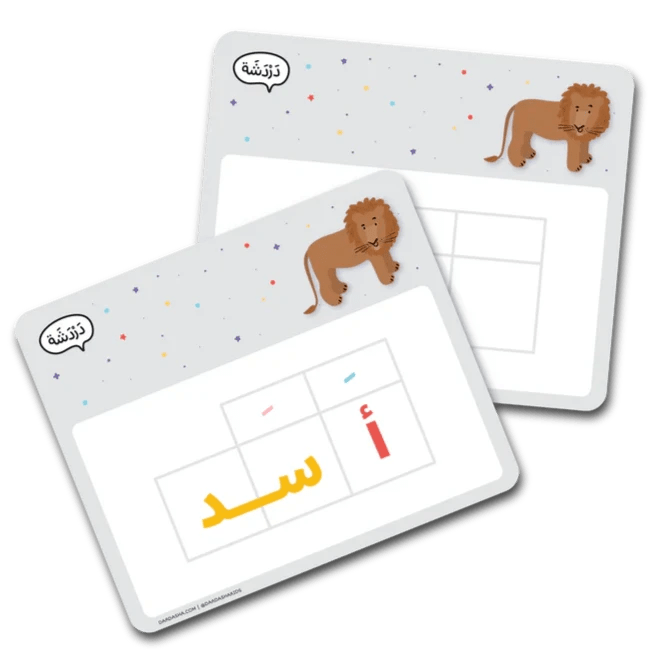 Designed to be used with the Arabic Alphabet Wooden Cubes, these cards provide template to kick start your child's reading and writing skills.