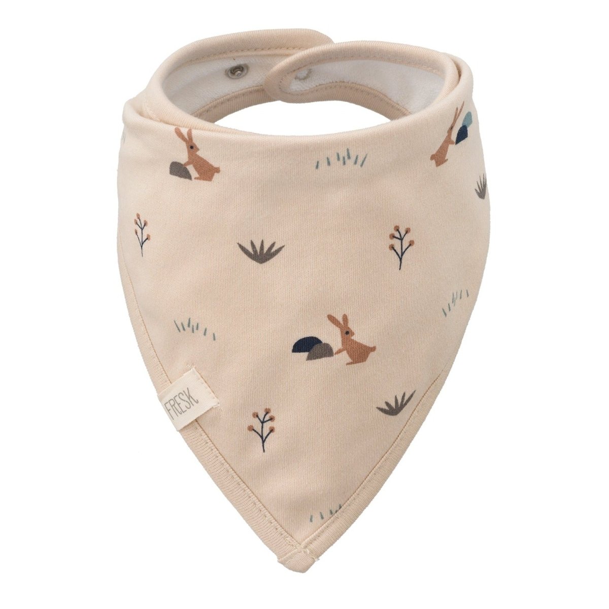 Get ready to be blown away by Fresk's one-of-a-kind Bandana - Rabbit Sandshell! Handcrafted in the Netherlands, this funky and fresh piece adds a delightful Scandinavian flair to your little one's wardrobe. With two snaps for a custom fit and a gentle touch on baby's skin, this bandana is the perfect mix of vintage coolness and playful charm. Order now and experience the cool, cute, and quirky vibes of this unique collection!