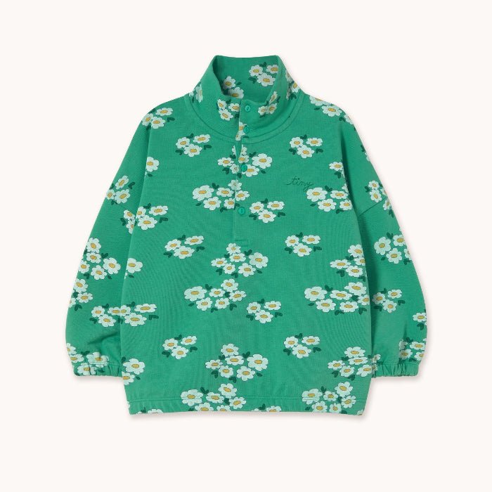Bursting with Barcelona charm, the Blossoms Mockneck Sweatshirt celebrates Tinycottons' playful spirit. This vibrant cotton jersey features an enchanting all-over floral design and a partially buttoned front that captures effortless style. Crafted from 100% soft cotton, it's the perfect canvas for your little one's colorful personality. Comfort meets creativity in every wear.