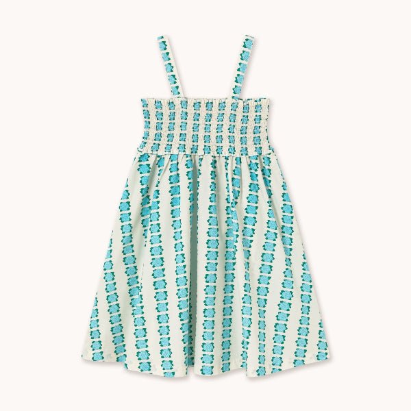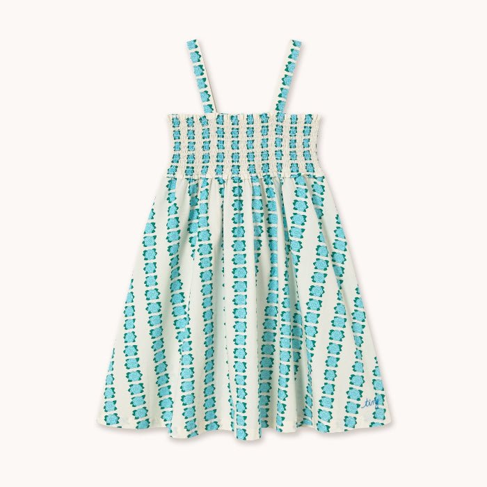 Sweet, sunny, and full of charm 💙🌼 This short dress features a delicate blue flowers print on an off-white base for an effortlessly lovely look. Designed with matching fabric straps and soft smocking at the chest for a comfy, flexible fit. Made from 100% cotton, it's perfect for sunny days and picture-perfect moments.