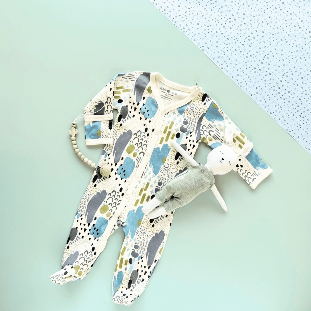 • Abstract Dusk Footie – soft, snug, and perfect for naps and play