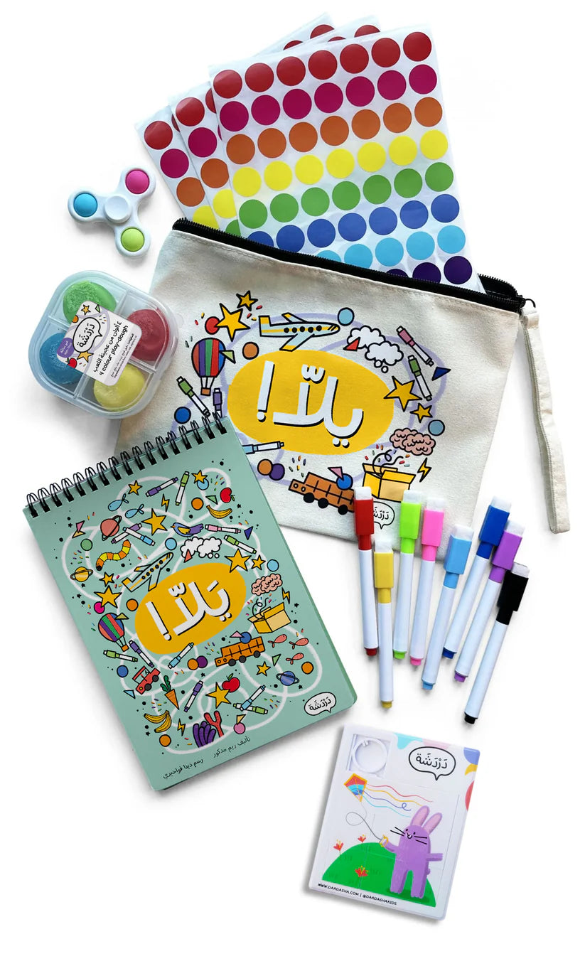 Prepare for oodles of fun and discovery with our (Yalla!) Travel Activity Kit - the excellent pal for the pint-sized explorers on the go! This all-in-one kit is loaded with merriment and imagination, ideal for lengthy jaunts, road trips, or a day out. The lush canvas pouch keeps it all snug and comes with a wrist strap for toting around with ease.