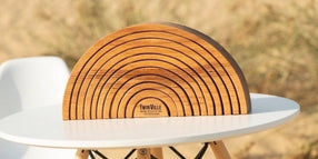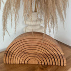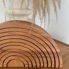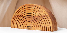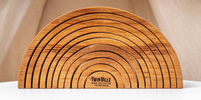 Tinis who exercise their hand and eye coordination, fine motor abilities, problem-solving techniques, pattern identification, and logical reasoning, to name a few, benefit in many ways and develop in vital areas. This beautiful handmade wooden rainbow by TwinVille will not only bring an aesthetic to any tini space, but lots of development for your little one at play.