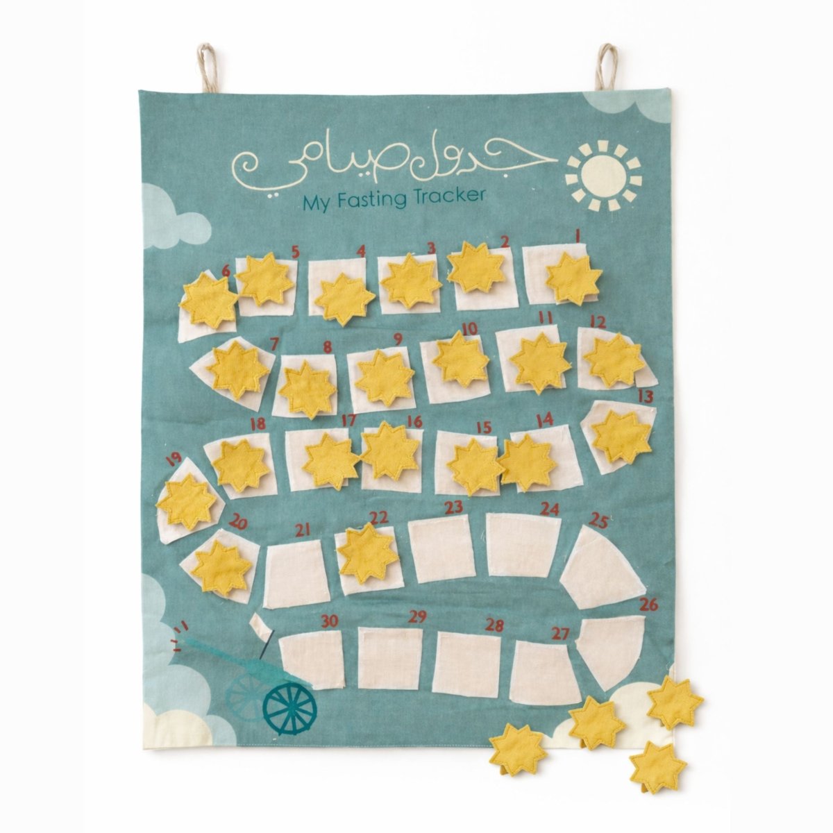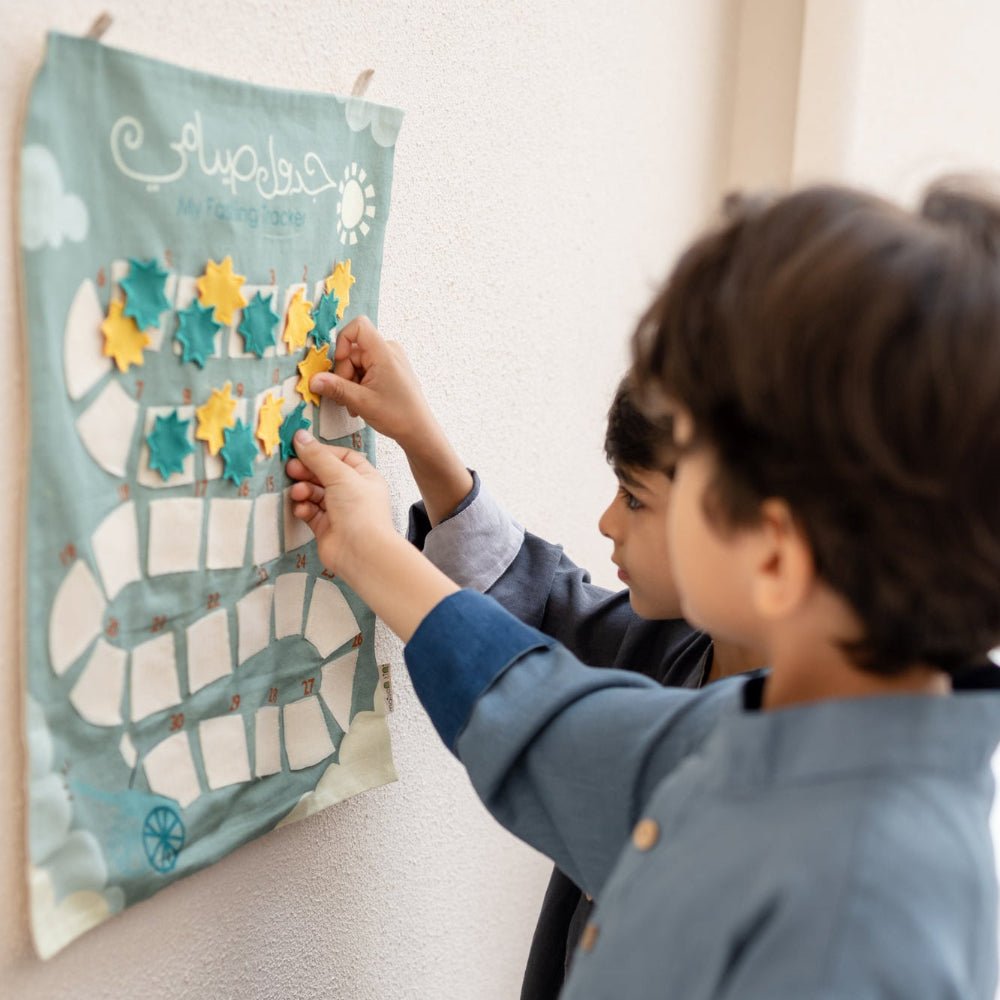 The Fasting Tracker is a thoughtful and practical tool designed to help your little ones stay consistent with their fast during Ramadan. With velcro figures, it allows your little ones to track the days they completed their fast, making it an ideal Ramadan tracker for family use. This makes it a fun way to encourage your children to fast in Ramadan.
