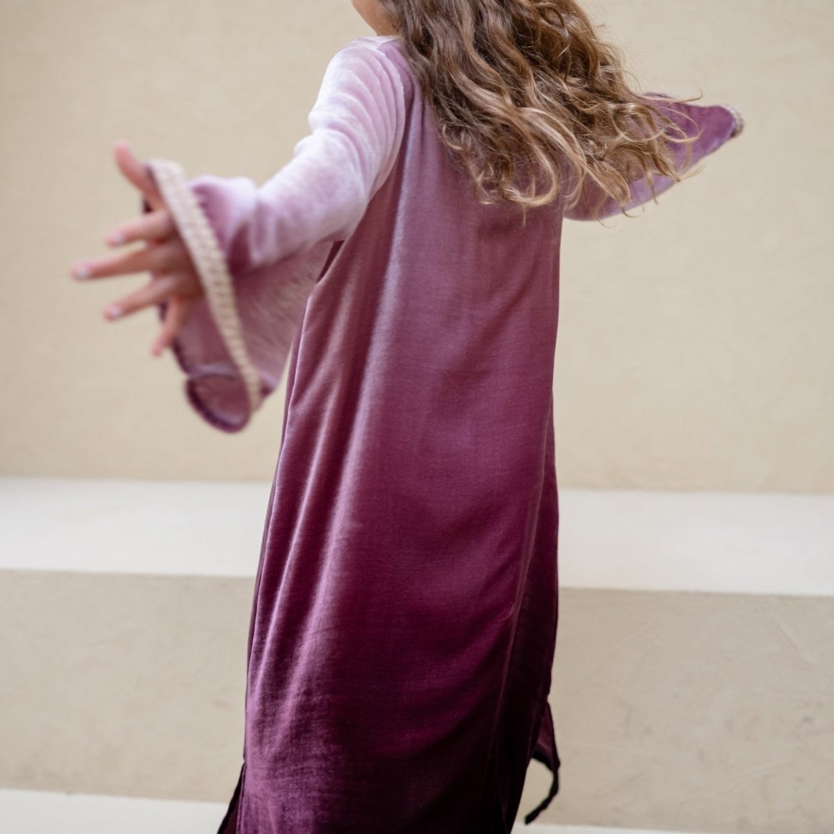 Girls Jalabiya - Ombré Pink Burgundy Velvet