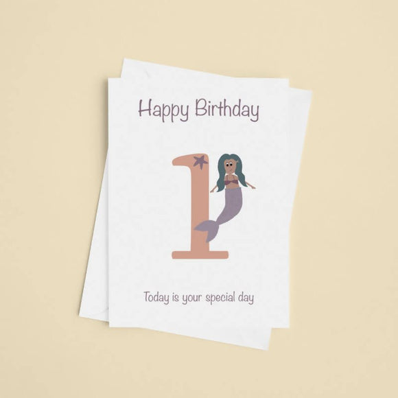 Send your special someone a "happy 1st birthday" with a splash! This fun and whimsical mermaid card is perfect for your little one's first birthday. Show them you care by wishing them a "fintastic" day!