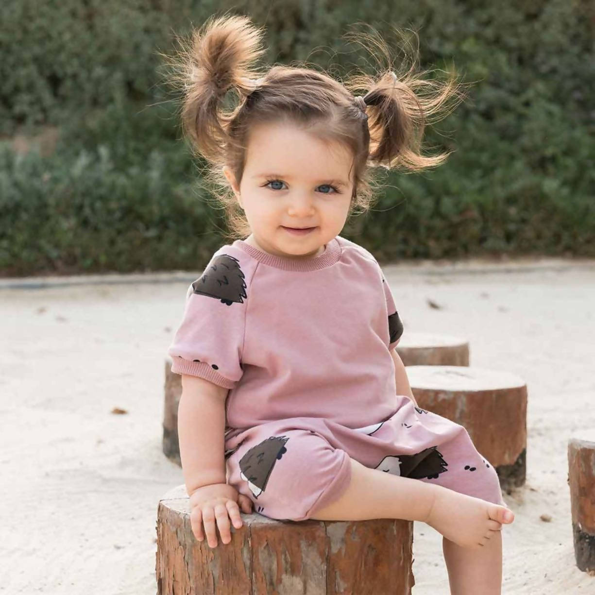 Plenty of hedge-hugs to go around with this cute pink hedgehog printed shorts set.