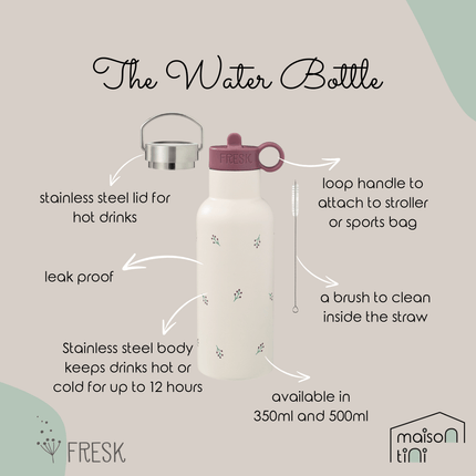 Fresk thermos bottle holds 500ml of liquid and keeps it warm or cold for up to 12 hours.