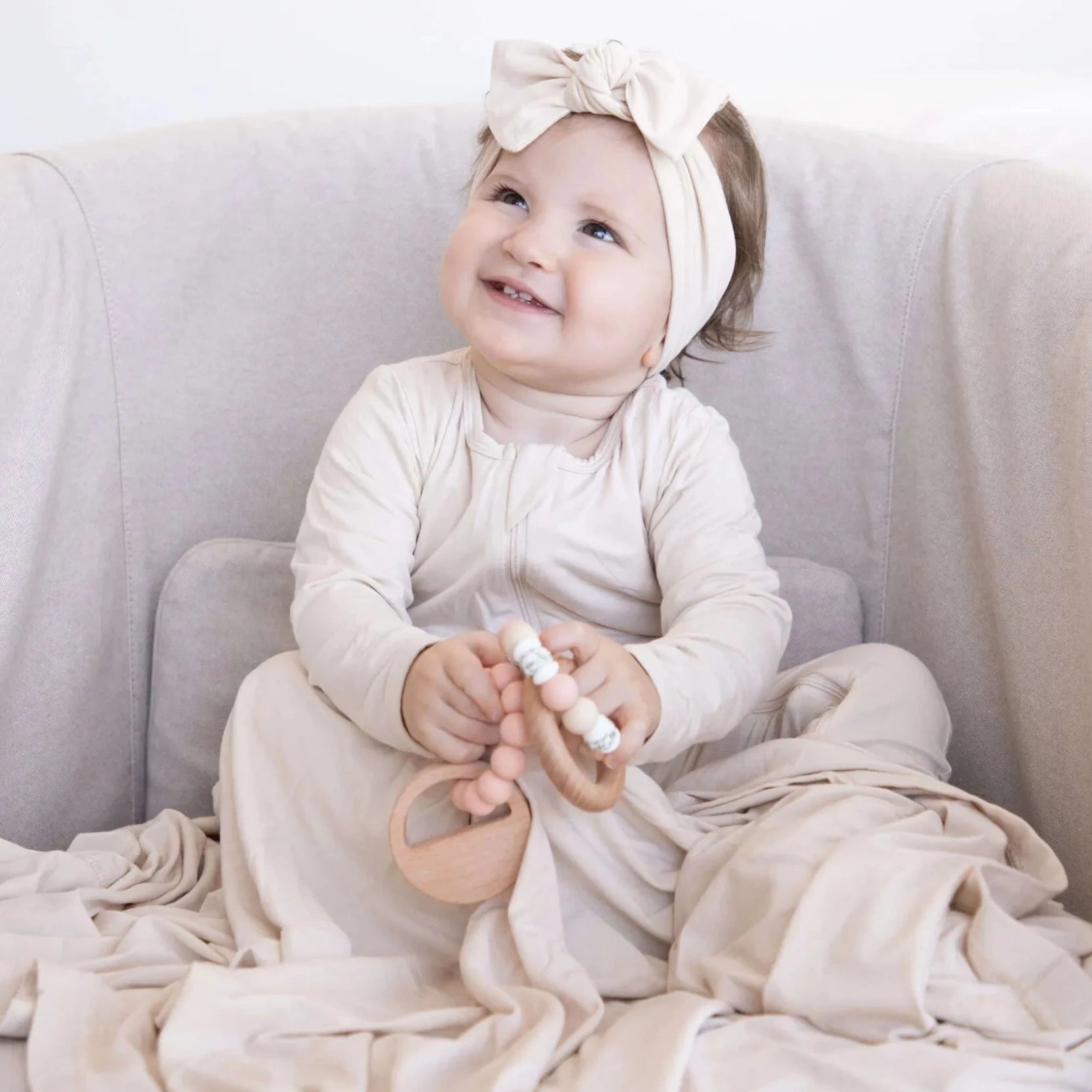 Add a little flair to your baby's look with the Manine Baby Bamboo Headband - CAFFE LATTE! This versatile, adjustable headband is perfect for newborns to toddlers, and will give that extra touch of elegance to any outfit.