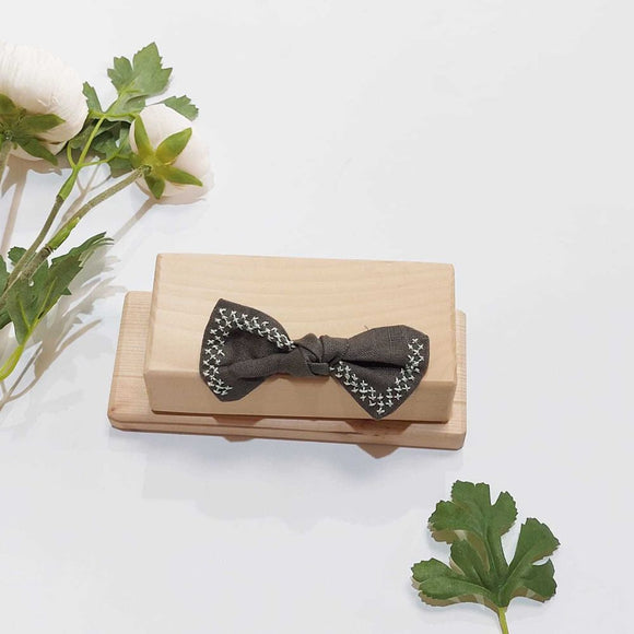 Linen Embroidered Bow Clip - Olive Green