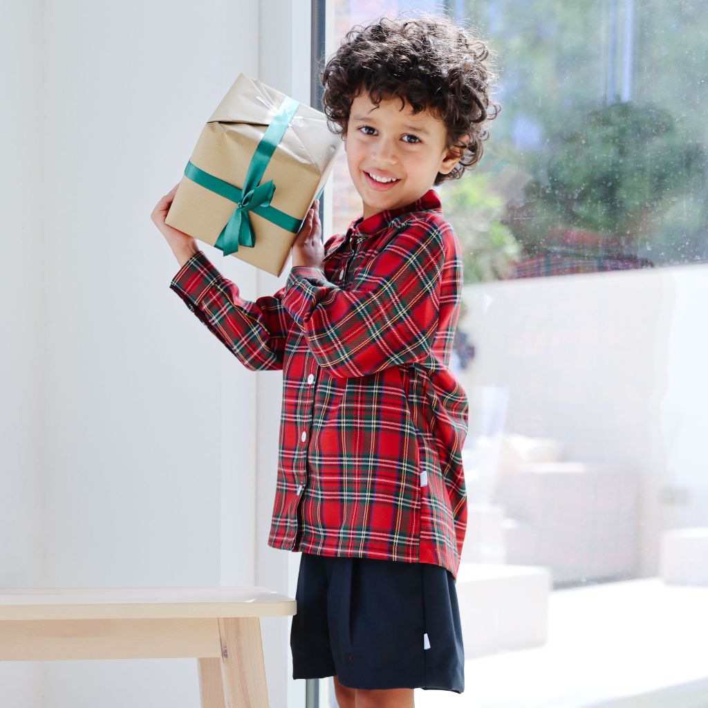 Add timeless charm to your child’s wardrobe with our classic Long-sleeved Tartan Shirt. Featuring a traditional button-up front for a comfortable, relaxed fit. The bold tartan pattern brings a fun, stylish twist to a classic look, making it a go-to this festive period.