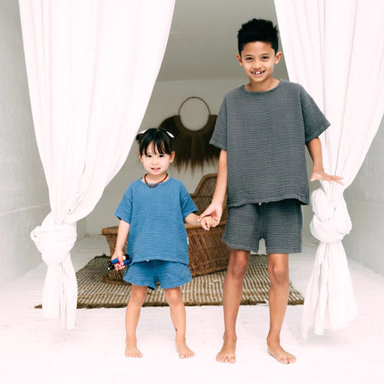 Expertly made with GOTS certified 100% cotton, Beaux Desert's matching sets are a must-have for any tini's wardrobe. The loose, relaxed design ensures long-lasting wear and superior comfort, making them ideal for delicate skin. With versatile, unisex colors, these high-quality products can be shared and easily paired, extending their durability.