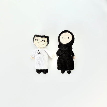 This mini crochet doll is your perfect companion! With a cute girl in an abaya design, she's ready to join you in all your holy festivities. Small enough to take with you on the go, she's the ultimate bestie. Crochet up some fun this season!
