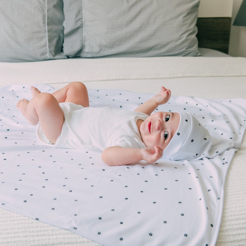 This newborn baby hat by Bo Reve is soft and breathable, with just enough stretch for a perfect and comfortable fit for those first days outside the womb. It is hypoallergenic and made from 100% GOTS certified organic cotton. Mix and match with the swaddles and blankets from the same brand to complete the look.