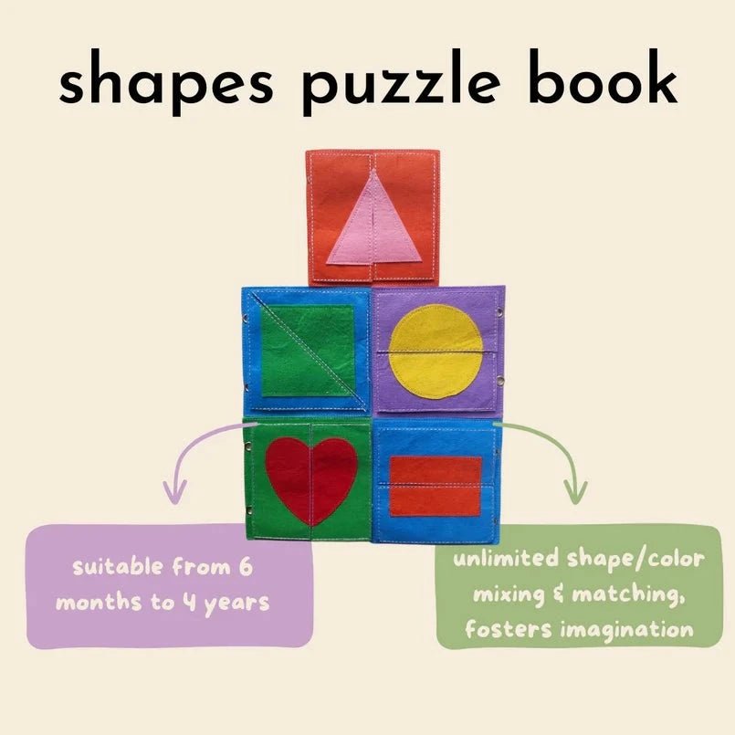 What better way to teach your tini humans about the shapes in a fun play. This shapes puzzle book has all the basic shapes with Velcro straps which will make it easier for your munching to understand the shapes.