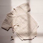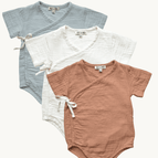 Introducing the Sienna Bodysuit by Eli & Nev - a unisex baby essential that'll be your go-to all season long! Made of 100% cotton muslin with short sleeves, snap-button fastening inside and a knot on the side, plus snap-button fastening at the gusset, it's designed with convenience and comfort in mind. With neutral colors that are easy to match with any outfit, it's the perfect pick for your little one. Let's get snappin'!