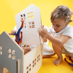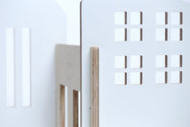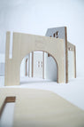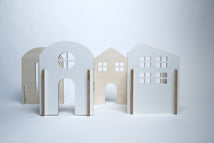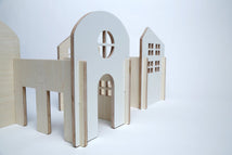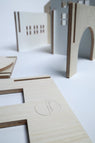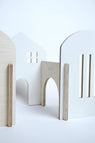 A contemporary and playful two-in-one miniature house and skyline design by MKandM! Interlocking components fit together to form a beautiful architecture. The style is modern and sleek, but also interactive; encouraging social and imaginative play while adding a contemporary touch to any interior environment. Children can use the skyline to build a city and populate it with cars and dinosaurs, or keep it plain and minimal. The skyline is flat packed, so it is simple to store and reassemble any time or anywhere!