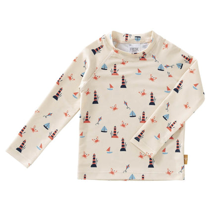 The adorable Fresk long-sleeved swim shirt adds even more beauty to your beach or pool day. Designed with built-in UV protection, it keeps your little water enthusiast's sensitive skin safe from the sun. The durable material, long sleeves, and short stand-up collar offer added sun protection. (Just don't forget the sunscreen for the rest of your body!)