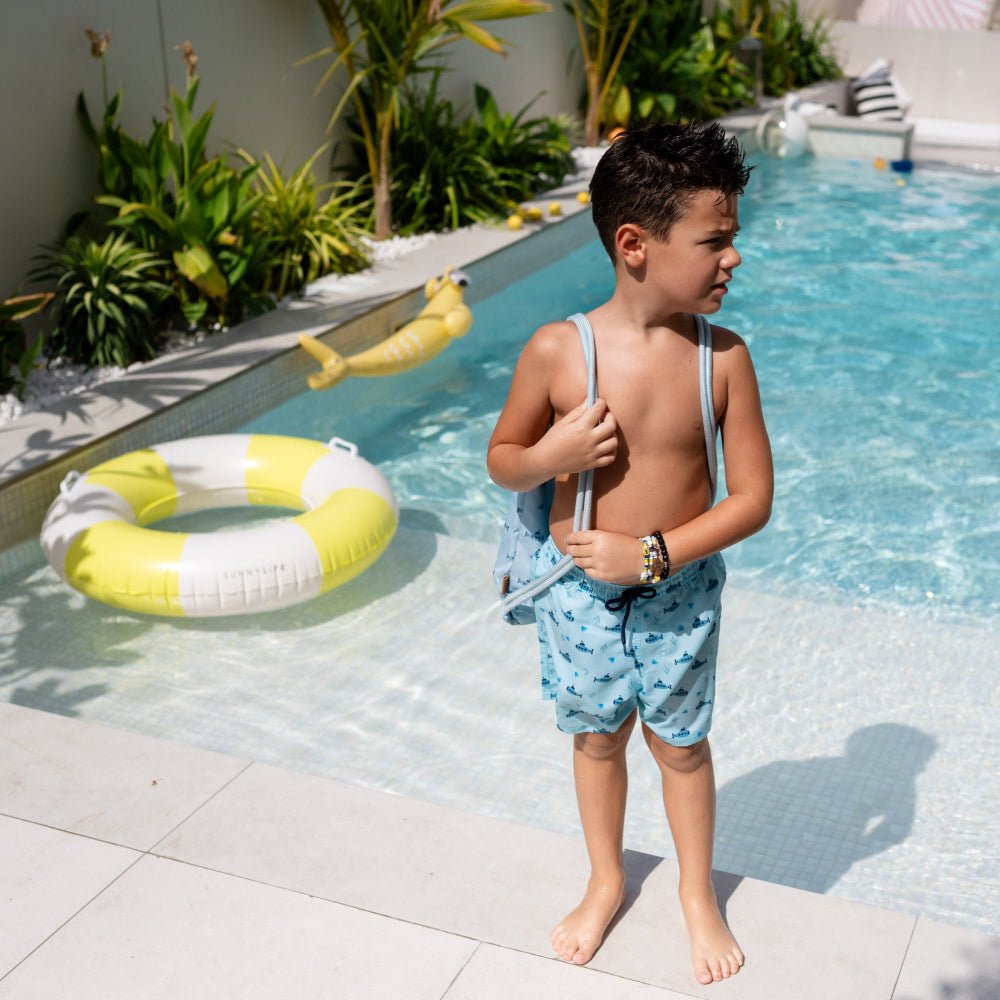 Get ready to make a splash with these Swim UV Shorts - Submarine from Fresk! Keep your kiddo's skin safe from UV rays while staying cool and stylish. The convenient drawstring ensures a perfect fit. Time to catch some waves!
