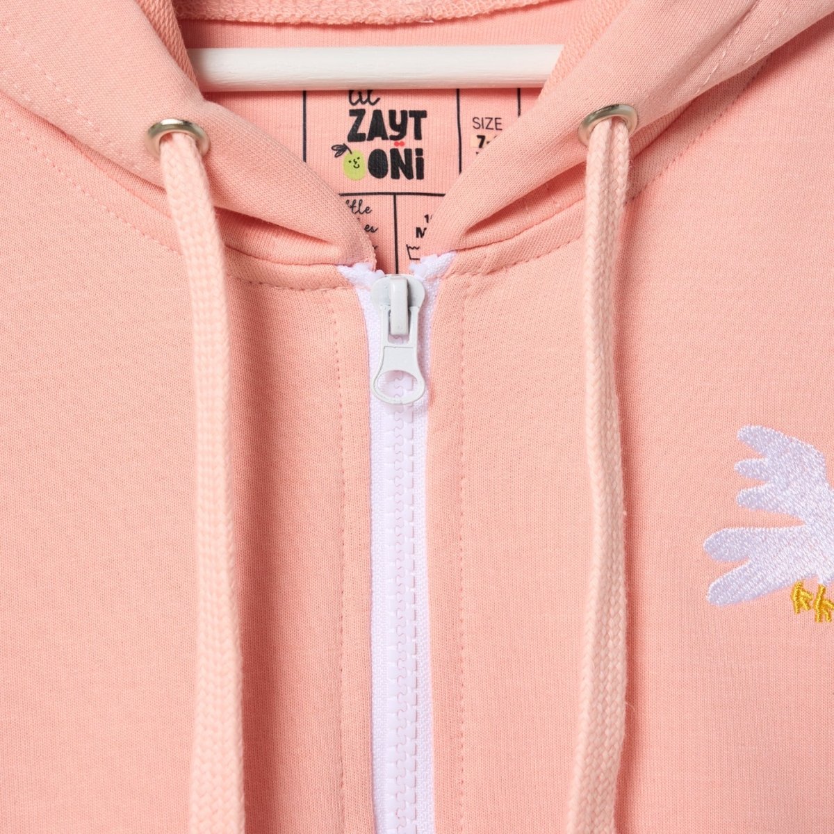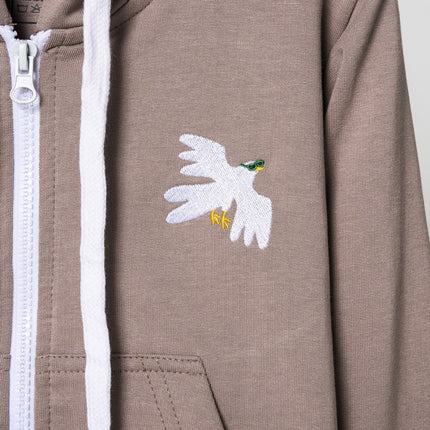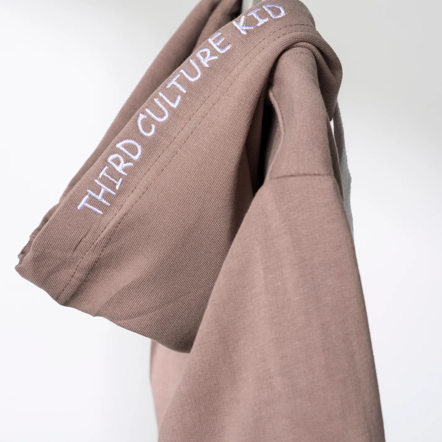 Lil Zaytooni's third culture kid zip-up hoodie with matching shorts. Lightweight, comfortable and perfect for the cooler days. With their signature dove on the front; the bold kuffiyeh print, zeit zaitoon tanke and key to return embroidered up the right sleeve and an oversized hoodie displaying our "Third Culture Kid" signature.