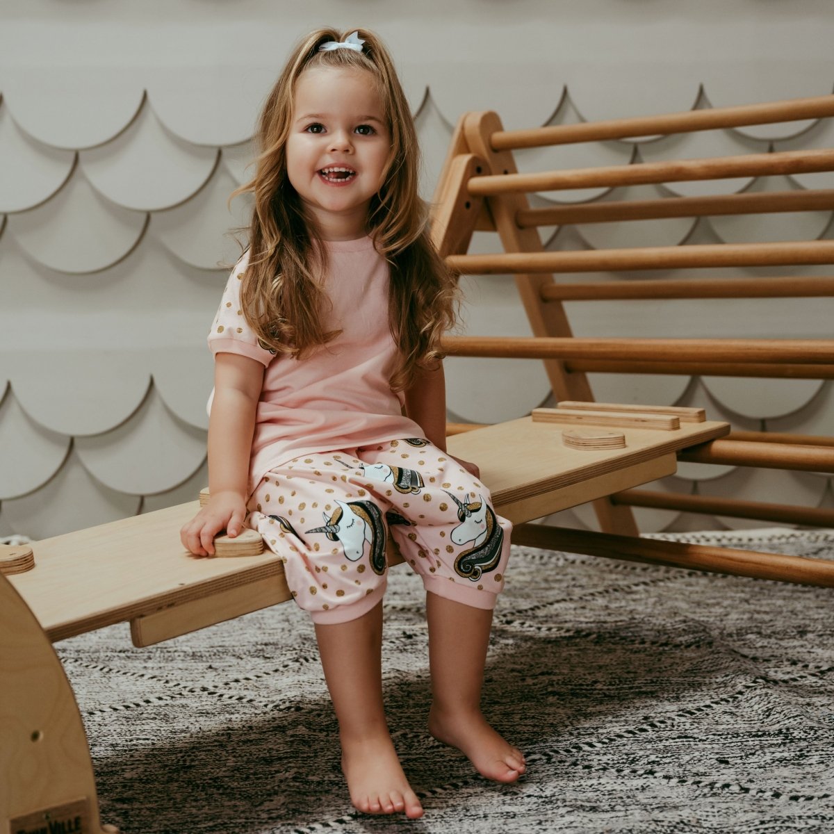 Get ready to sparkle and shine! Whether they're exploring fantasy lands or having a cozy day at home, this soft pink unicorn shorts set will keep them comfy all day long.