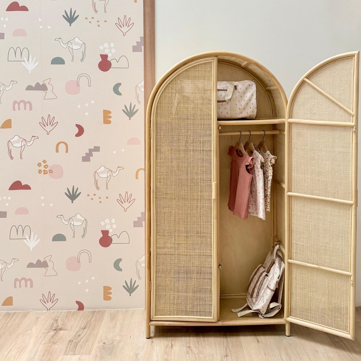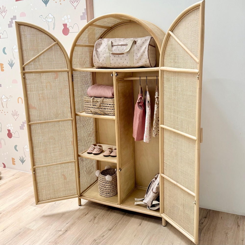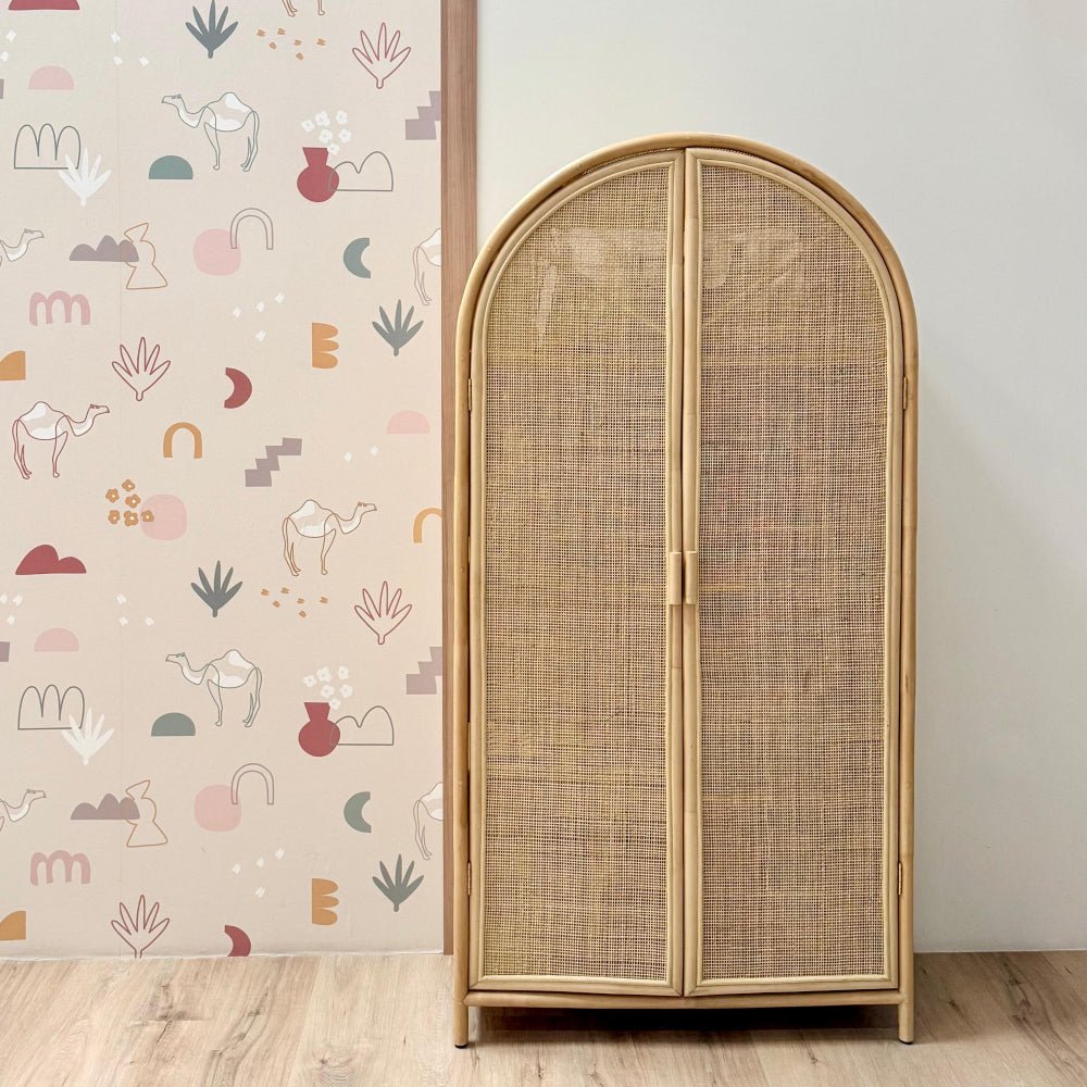 Organize your child’s essentials in style with our Arched Rattan Kids' Wardrobe, thoughtfully designed to combine elegant aesthetics with everyday functionality. This wardrobe features a soft arched top, handwoven rattan doors, and a natural wood finish that blends effortlessly into boho, Scandinavian, or minimalist interiors. Compact yet spacious, it offers the perfect storage solution for small garments, accessories, and more.