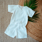 Treat your tot to a touch of timeless luxury with the Luan Linen Set from Cuddles! This charming round neck shirt and matching shorts make an adorable (and oh-so comfy) combo for your kiddo. With this classic linen look, they'll be strutting stylishly during their summer vacays or lounging in leisure. Perfect for both cute and chic looks!