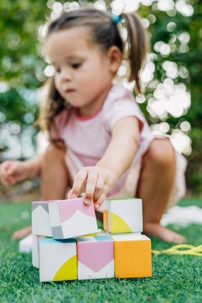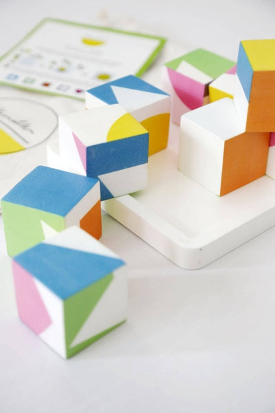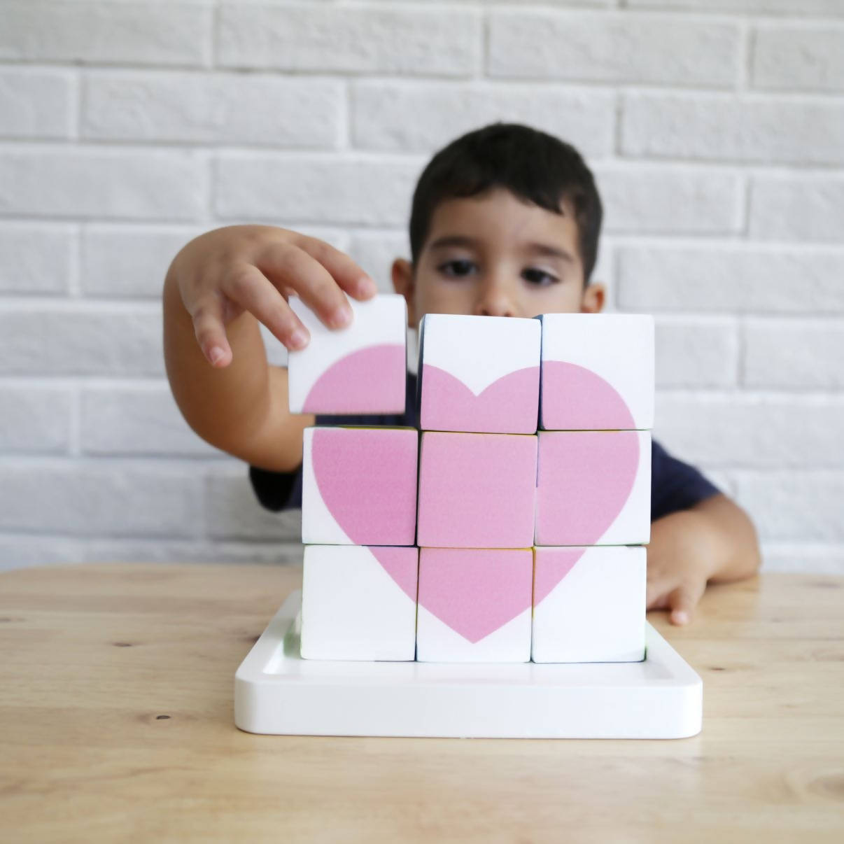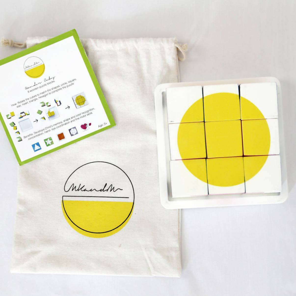 A fun chunky block puzzle by MKandM to promote shape learning! Turn the cubes to form the following shapes: circle, square, star, heart, triangle, and hexagon. Help your child improve their memory, enhance shape and color identification, build focus, and develop hand-eye coordination, and fine motor skills.