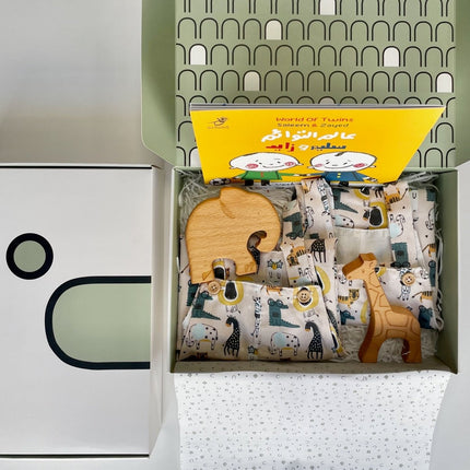 Introduce your tinis to their new "Zoo Buddies" with this gift box! Perfect for siblings, baby showers, or birthdays. Includes a fun selection of zoo animal toys.